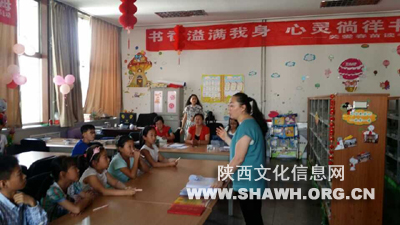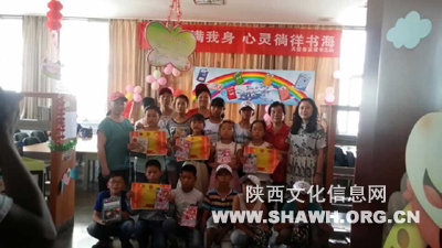 为了营造全社会关爱留守儿童的良好氛围,让留守儿童和一些家庭贫困的孩子过一个快乐、充实的暑假,7月28日我馆少儿阅览室联合榆林市“金秋春光”志愿者服务队,为这些特殊的孩子们举办了一场“书香溢满我身,心灵徜徉书海”关爱春苗读书活动。